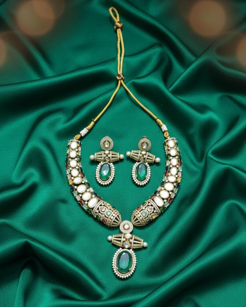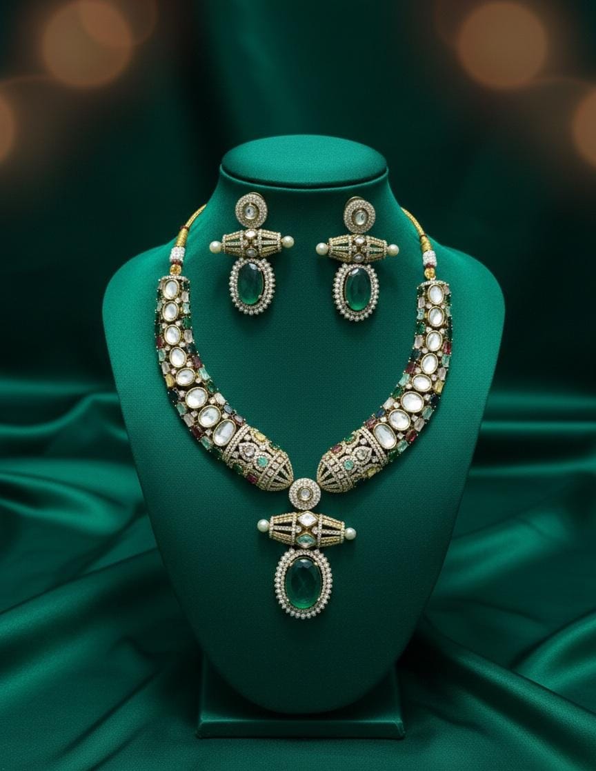 Royal Emerald Polki Kundan Necklace Set